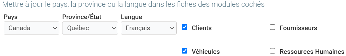 Enfin, si le pays, l'état/province ou la langue ont changé, vous pouvez apporter des modifications dans les catégories suivantes: