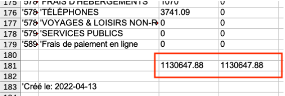 Ouvrez le fichier Balance.xls et assurez-vous que le total des colonnes débits et crédits soit identique au sou près.