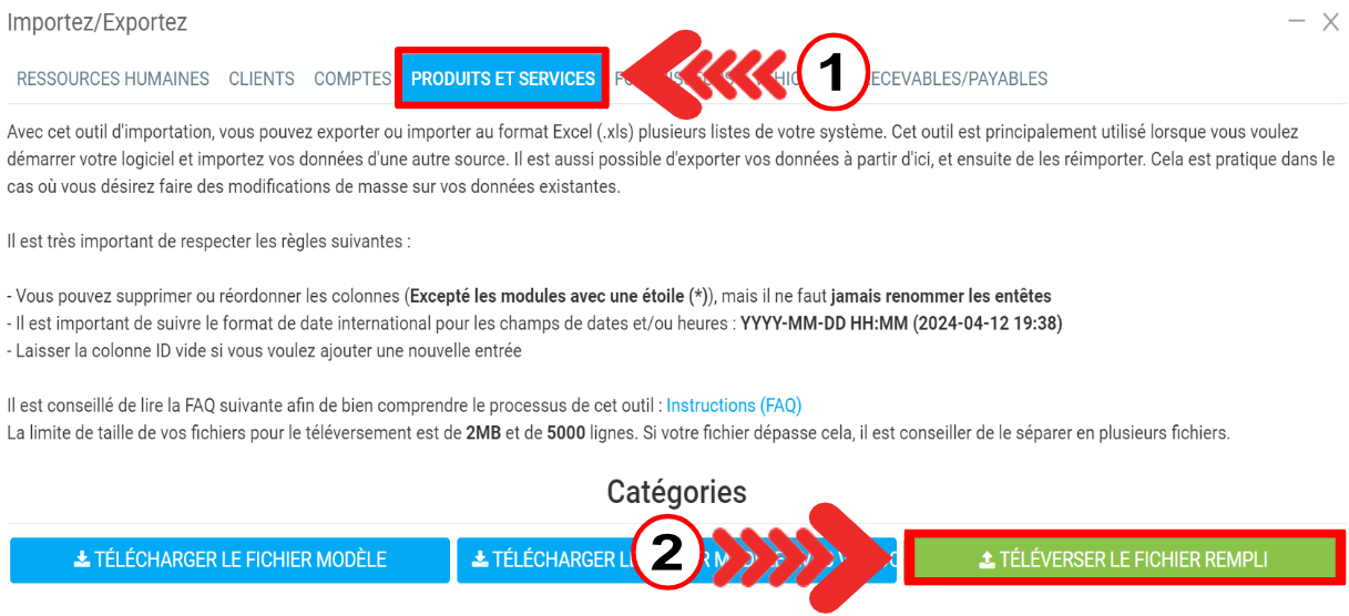 - Importez vos produits et services.