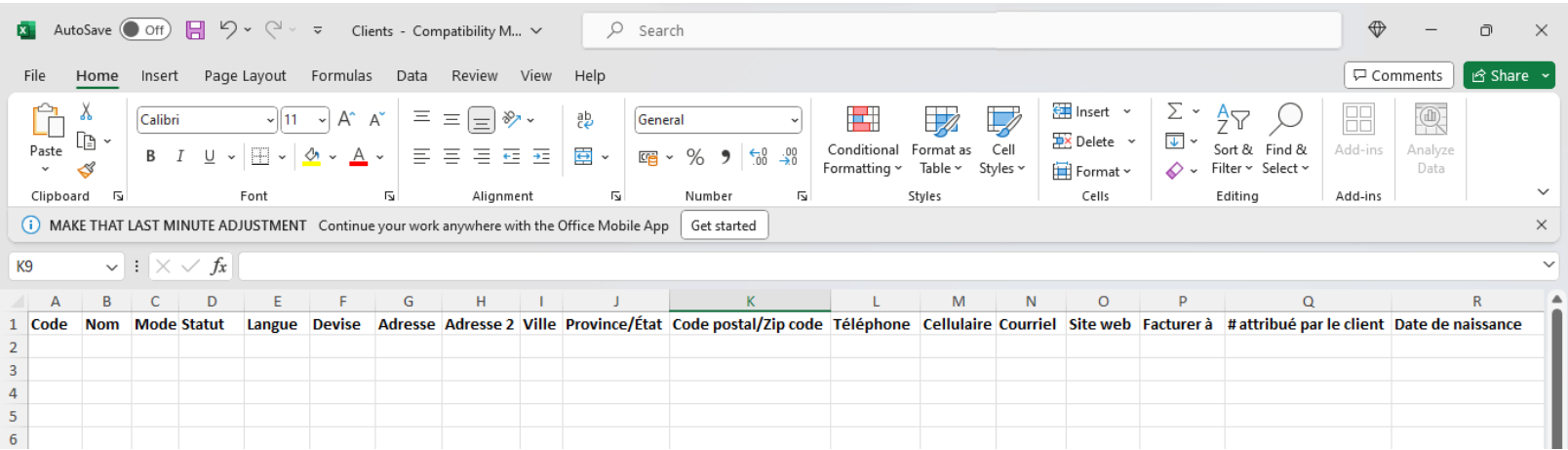 Dans le cas des clients, lorsque vous cliquez sur Télécharger le fichier modèle, les informations transférées seront les suivantes: