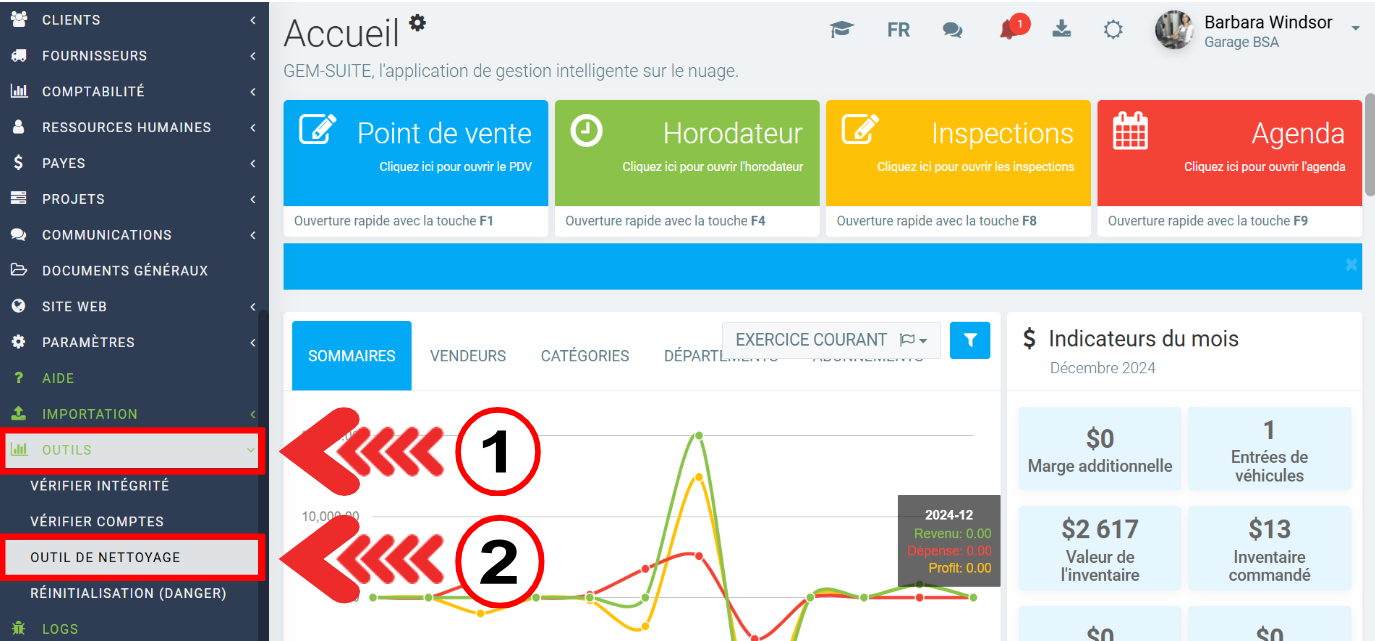 Pour accéder l'Outil de nettoyage, cliquez sur le menu de gauche sous Outils > Outil de nettoyage.