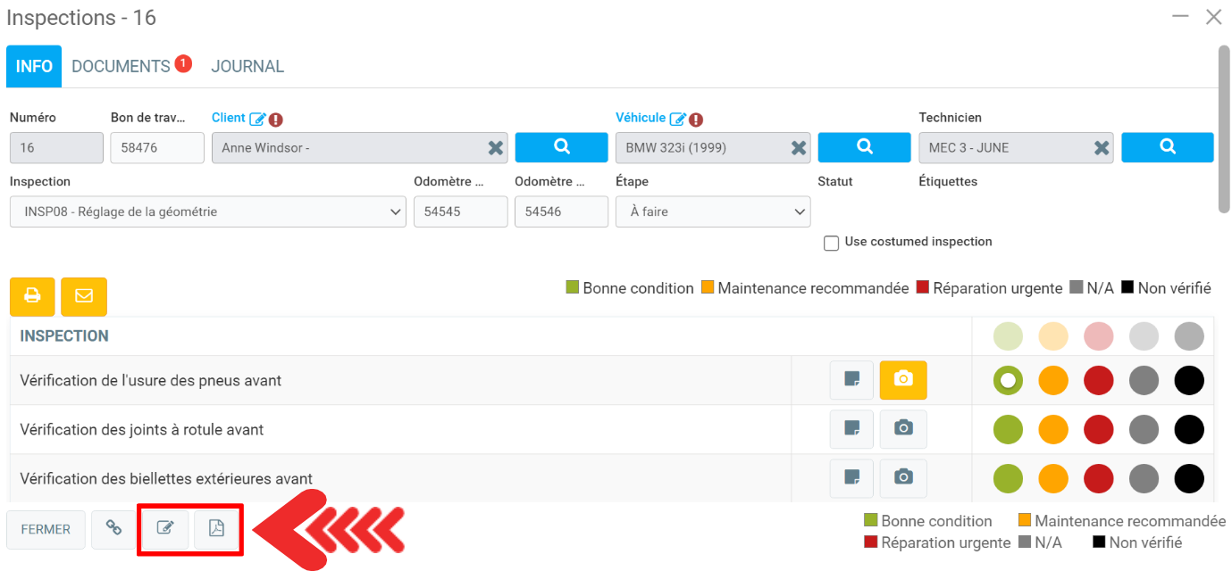 Note: Une fois le document PDF créé, vous pouvez toujours apporter des modifications à l’inspection et cliquer sur le bouton PDF pour générer un nouveau document.