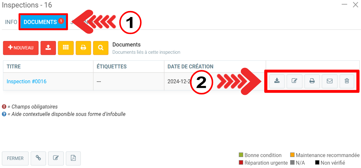 Imprimer ou envoyer un rapport d'inspection par email ou SMS