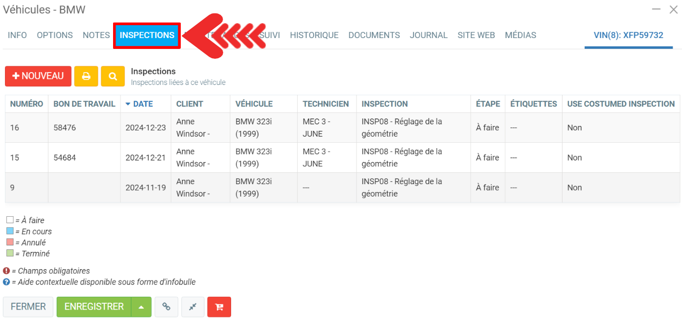 Recherchez le véhicule et ouvrez la fiche de celui-ci.