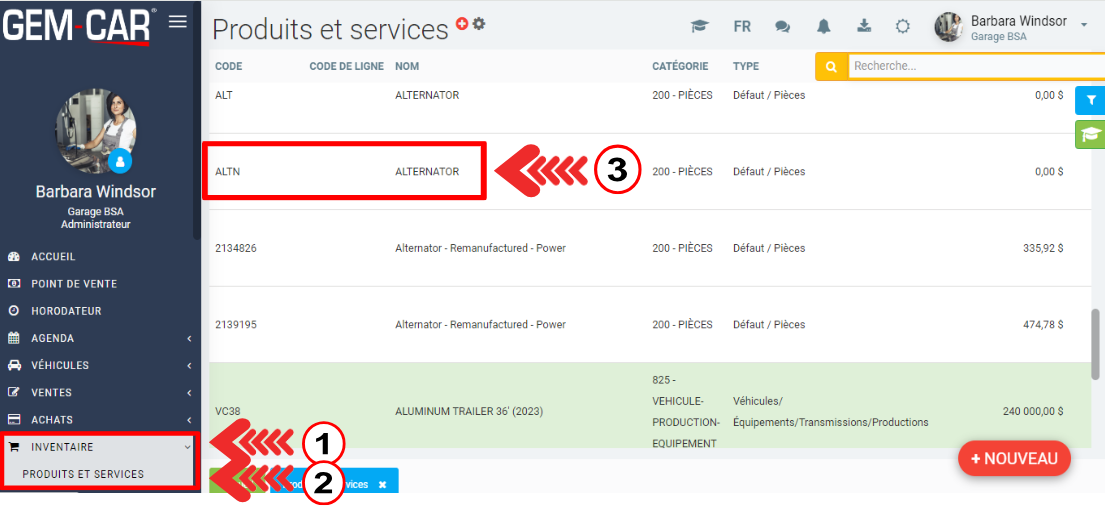 Pour ce faire, cliquez sur Inventaire > Produits et Services et cliquez sur le produit ou créez-en un nouveau en cliquant sur +Nouveau.