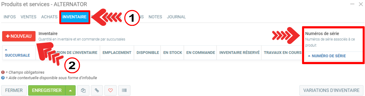 Ajouter le module de numéro de série à l'inventaire