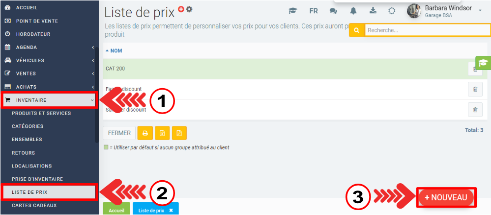 Pour activer la matrice progressive, allez dans le menu Inventaire > Liste de prix > +Nouveau.