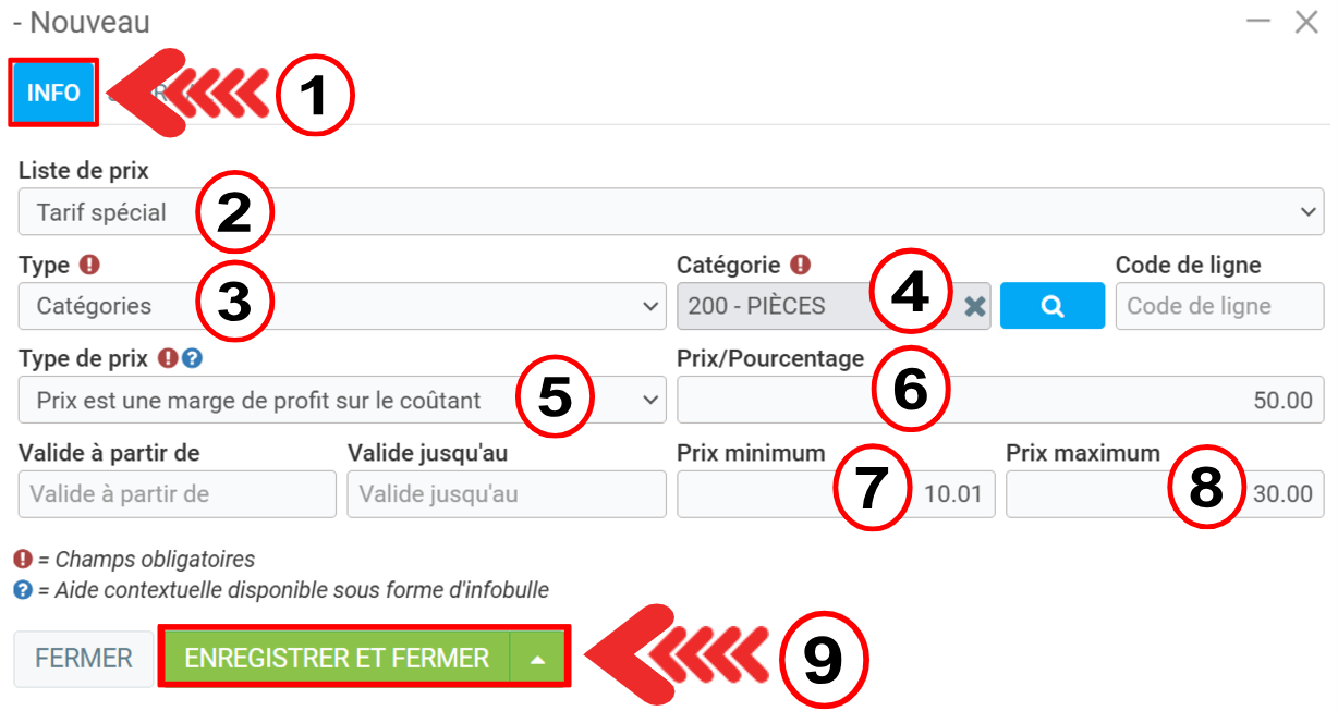 - Type de prix