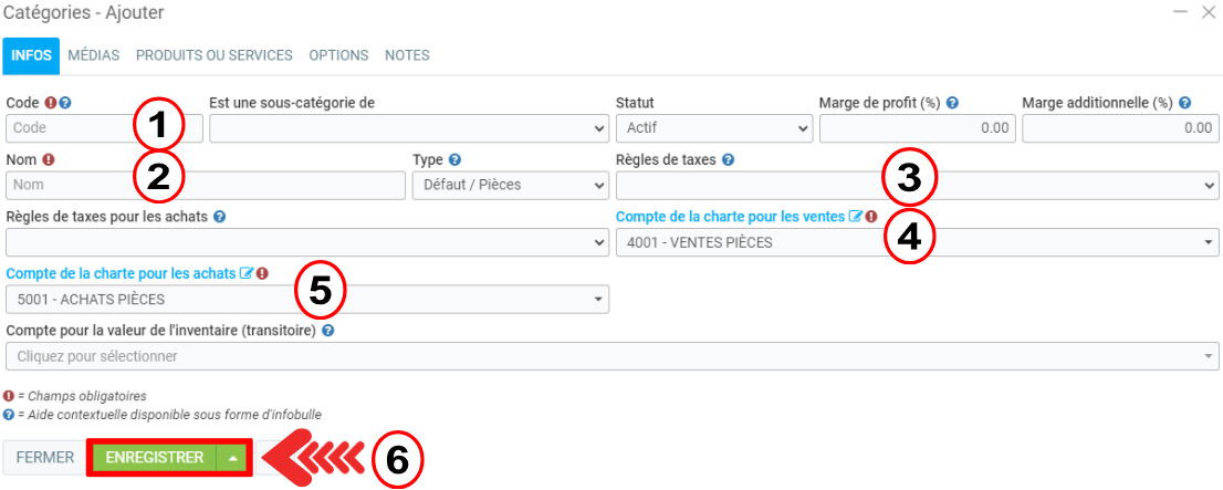 Comprendre les catégories définies sous Inventaire