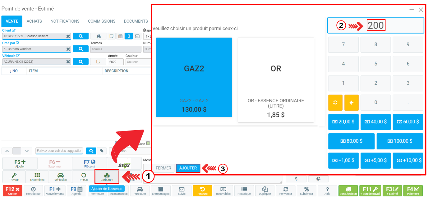 Dans le Point de vente, sélectionnez le client que vous souhaitez et cliquez sur Carburant dans le coin gauche de la fenêtre, à côté de l'icône des Pneus.