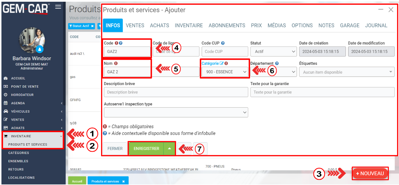 Ajouter à l'Inventaire et ajuster les prix du gaz
