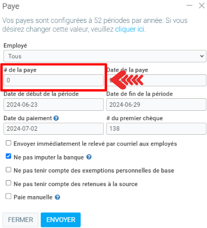 3. Inscrivez un numéro de paie inférieur au premier numéro utilisé pour l'année en question.