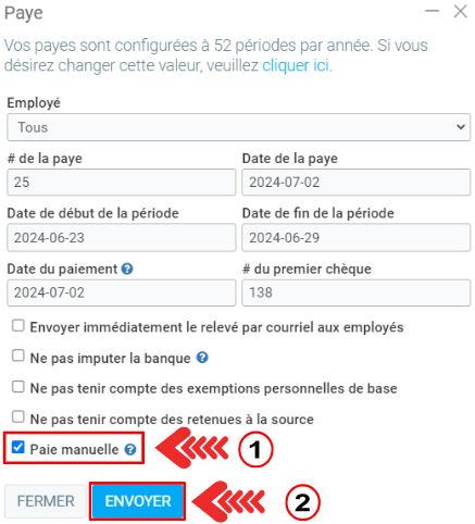 Assurez-vous de sélectionner l'option suivante: "Paie manuelle".