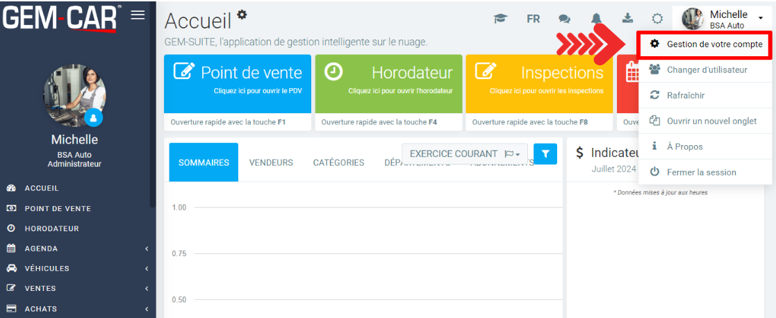 Cliquez sur le menu de l'avatar en haut à droite > Gestion de votre compte.