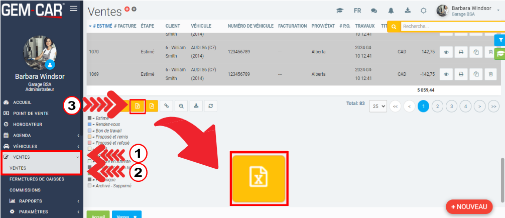 Il existe une multitude d'endroits dans GEM-CAR d'où il vous est possible d'exporter des données, qui seront contenues dans un fichier au format Excel.