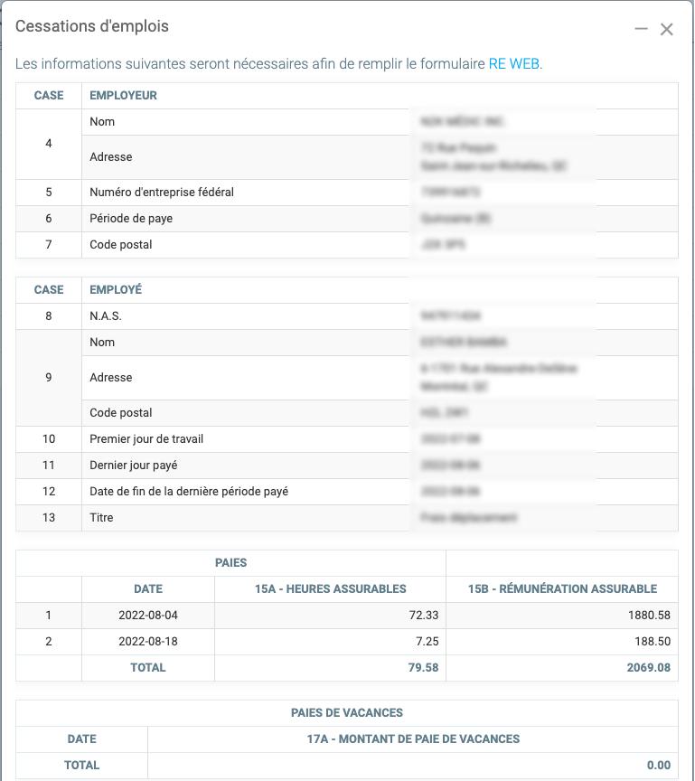 Actuellement, GEM-CAR ne vous permet pas de générer des relevés d'emplois automatiquement. Vous aurez donc besoin des cumulatifs de paie afin de pouvoir procéder via le site web du gouvernement fédéral (REWEB) accessible via le lien suivant :