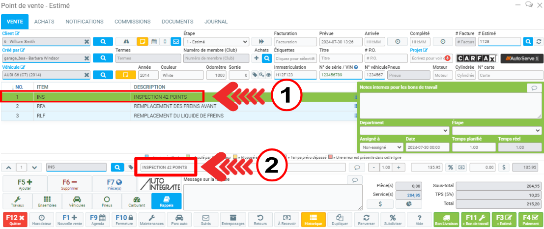 Par exemple, vous souhaitez spécifier le type d'inspection souhaité par le client: l'inspection en 42 points.