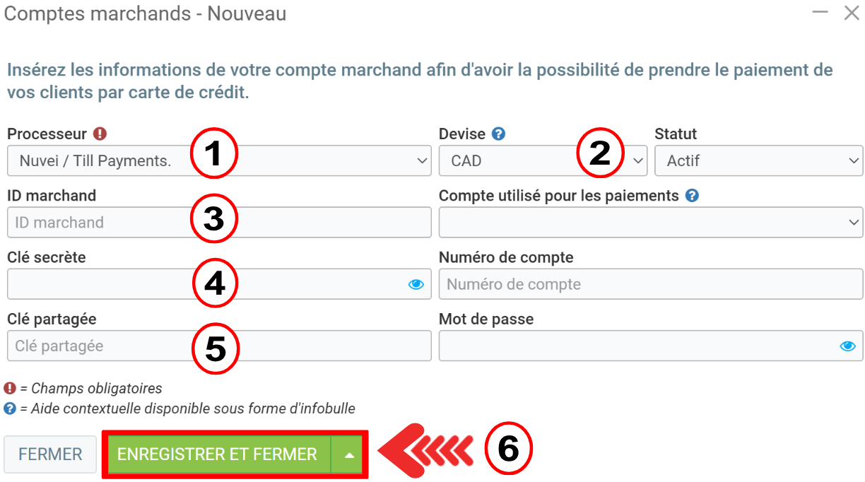 Une fois le marchand ajouté par Nuvei, il est possible récupérer les informations nécessaires pour les configurer dans GEM-CAR:
