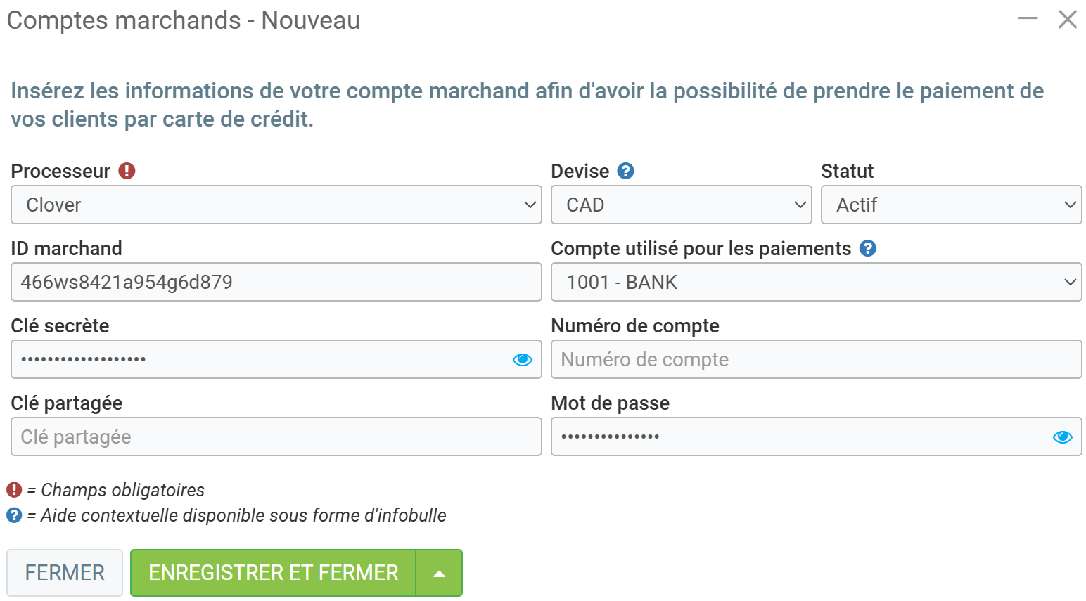 Configurations des paiements par Clover