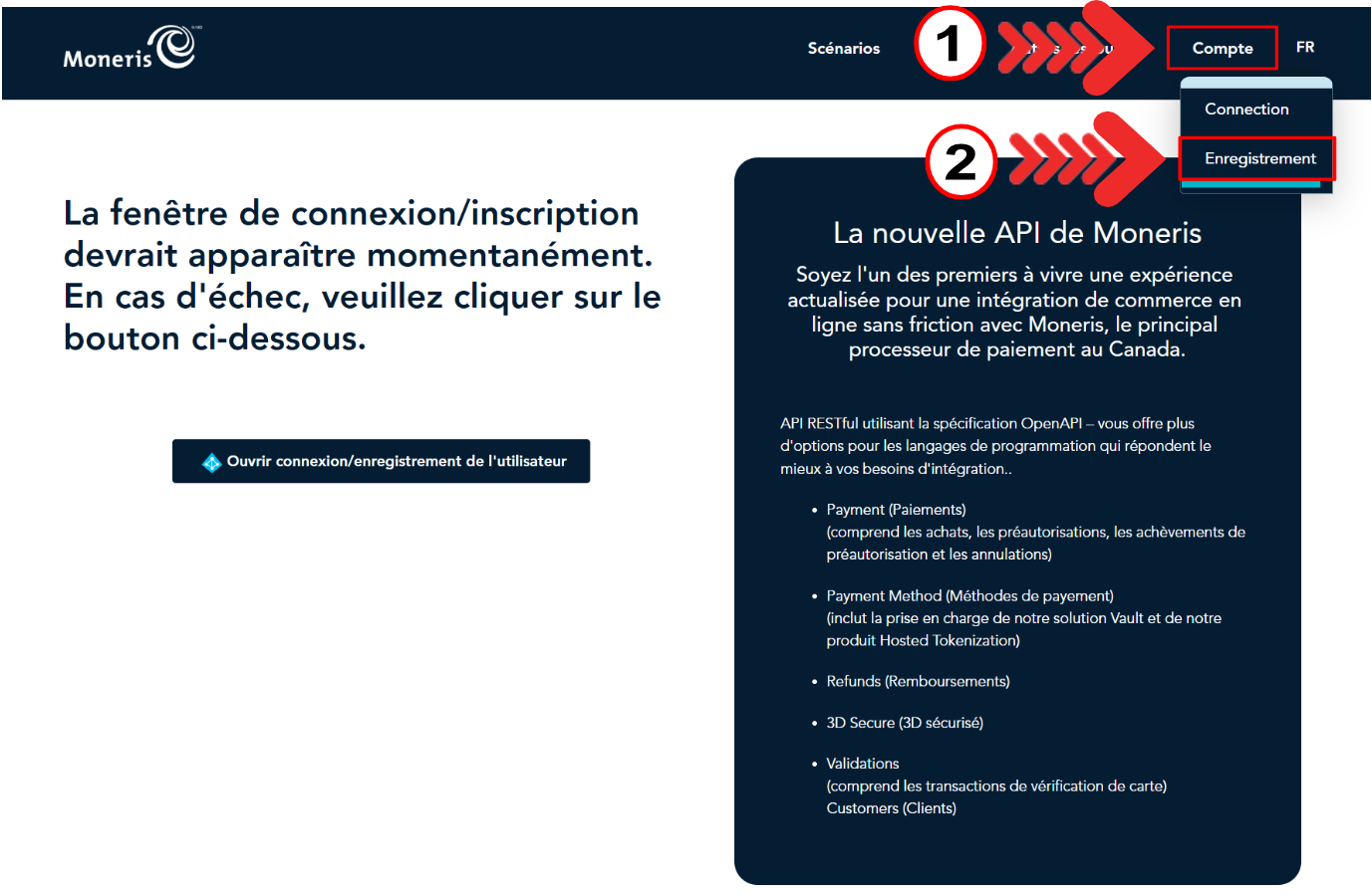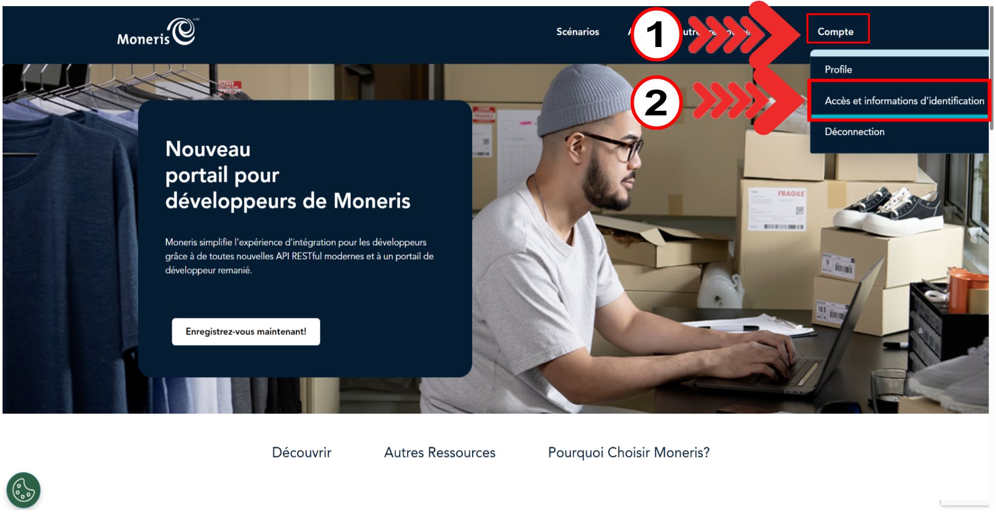 Ouvrez ensuite le lien suivant: https://api-developer.moneris.com/fr/signin