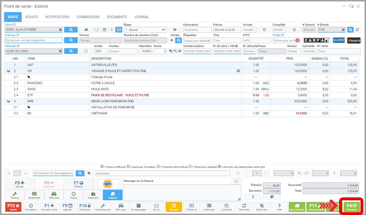 Pour envoyer une facture à un client par courriel, à partir du Point de Vente, cliquez sur Paiement (F4).