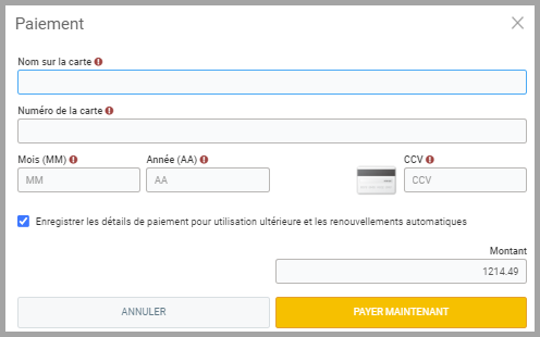 Depuis le courriel, le client clique sur Payer en ligne > Procéder au paiement et saisit manuellement les informations de sa carte bancaire.