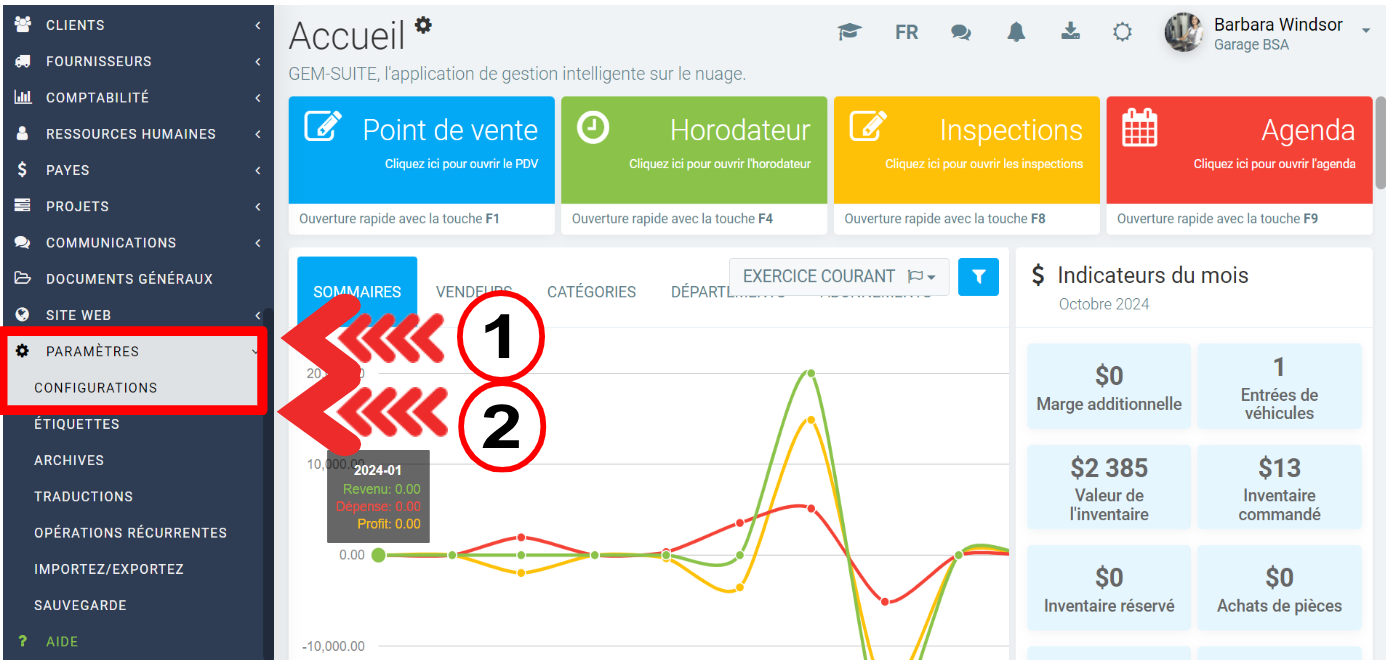 Dans le menu principal, cliquez sur Paramètres > Configurations.