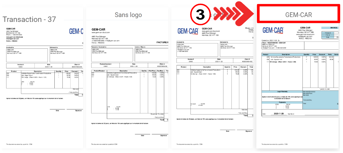 Pour qu'un estimé ou une facture soit émis sans erreur d'espacement, surtout lorsque des entreposages sont insérés, vous devez configurer le bon modèle dans votre GEM-CAR afin d'éviter cela.