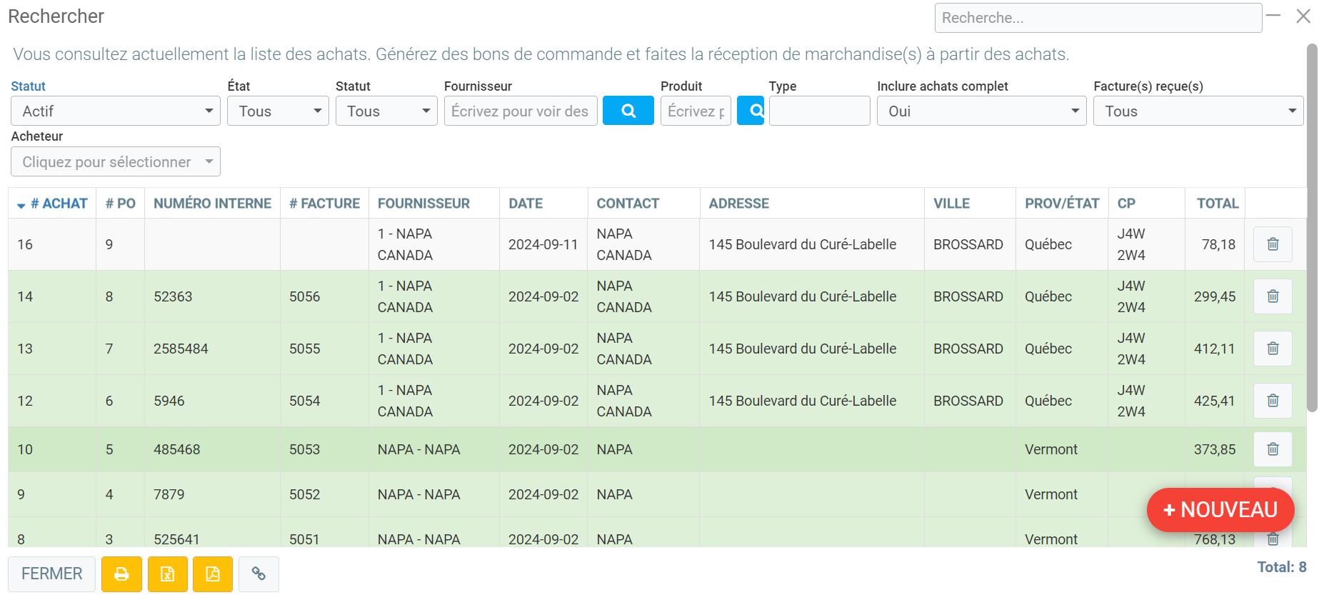L'achat fera partie de la liste et sera accessible à partir du menu Achats > Achats.