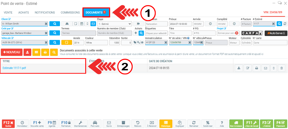 L'estimation sera automatiquement créée en tant que document sous la section Documents.