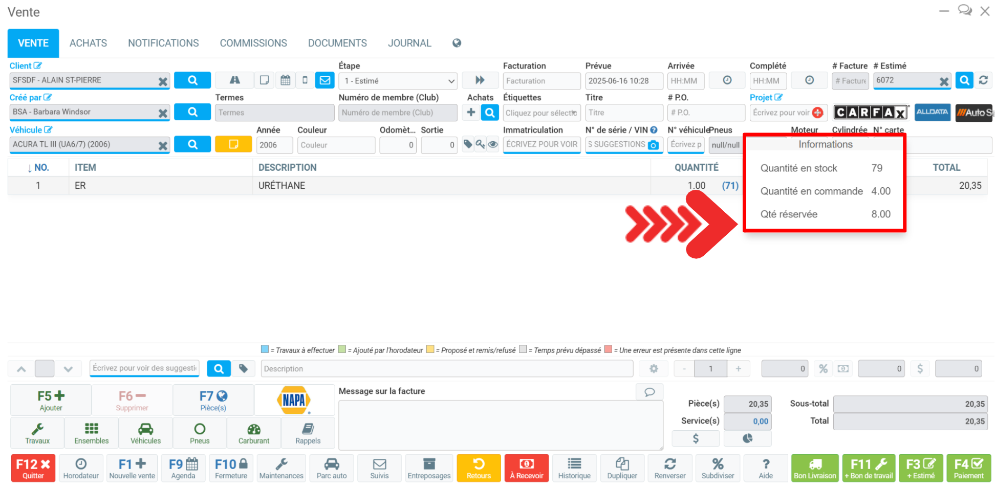 L'inventaire s'ajuste immédiatement en fonction de la quantité ajoutée.
