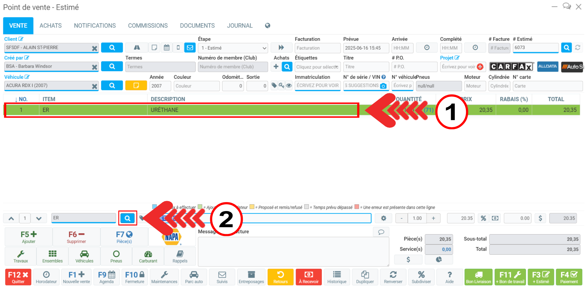 Sélectionnez le produit pour qu'il apparaisse en vert et cliquez sur la loupe pour accéder à la fiche du produit.