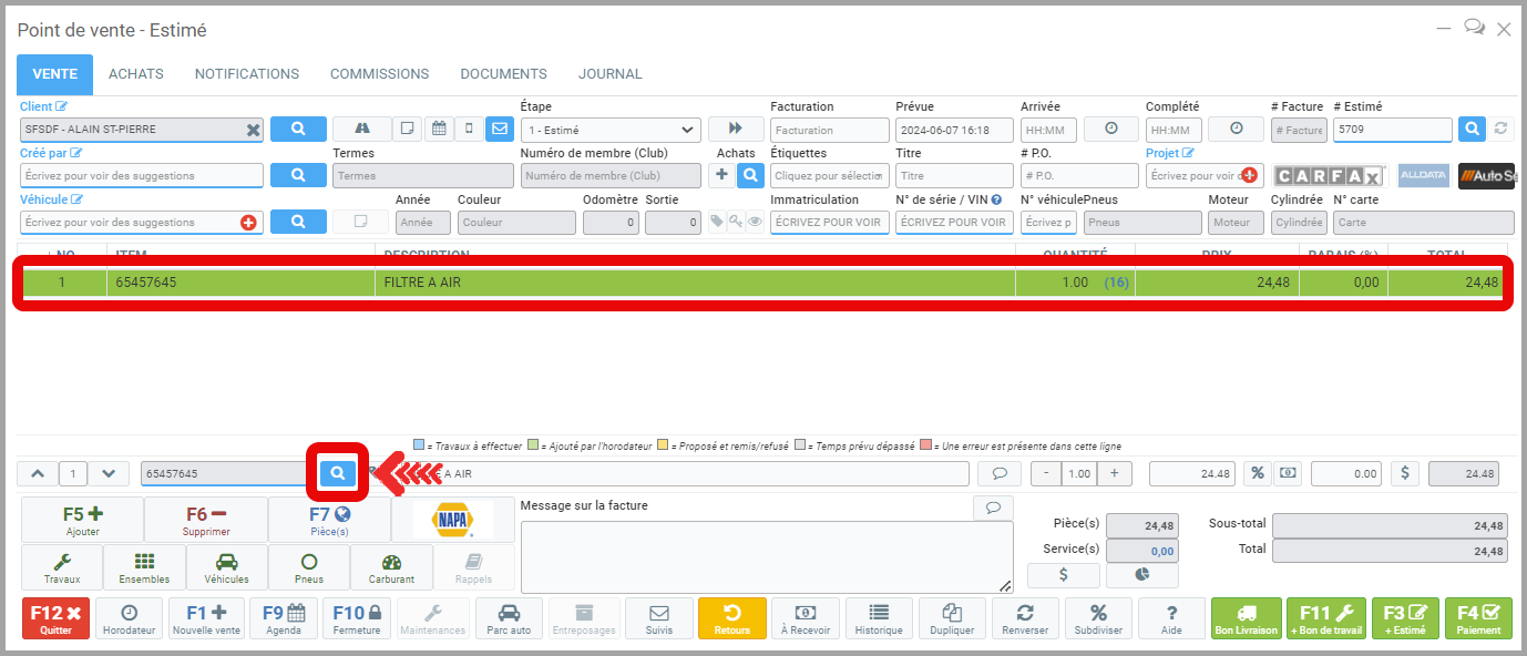 Pour modifier le prix d'un produit ou service dans l'inventaire à partir du Point de vente, commencez par ajouter le produit à la vente.