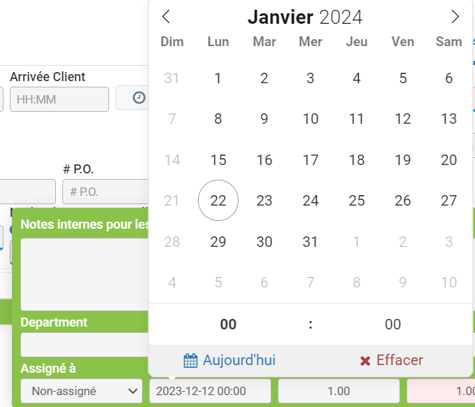 - La date: ouvre une petite calendrier à l'écran à partir de laquelle vous pouvez planifier un rendez-vous. Vos modifications seront automatiques, il vous suffit de cliquer en dehors de la zone
