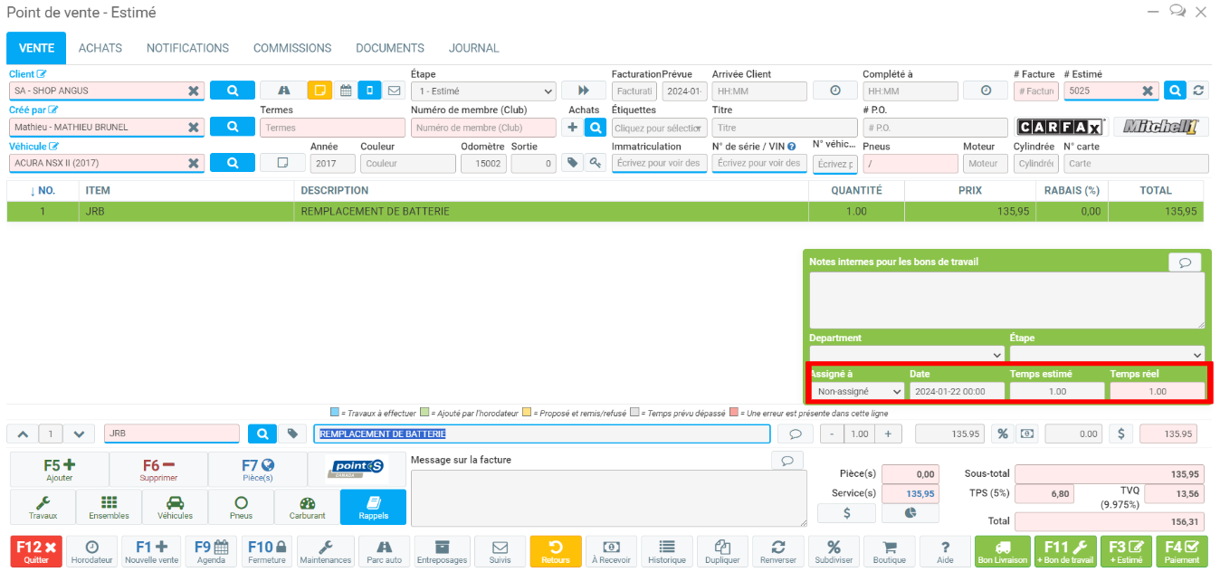- Attribué à : Permet de choisir rapidement entre le poste ou le mécanicien affecté au travail.