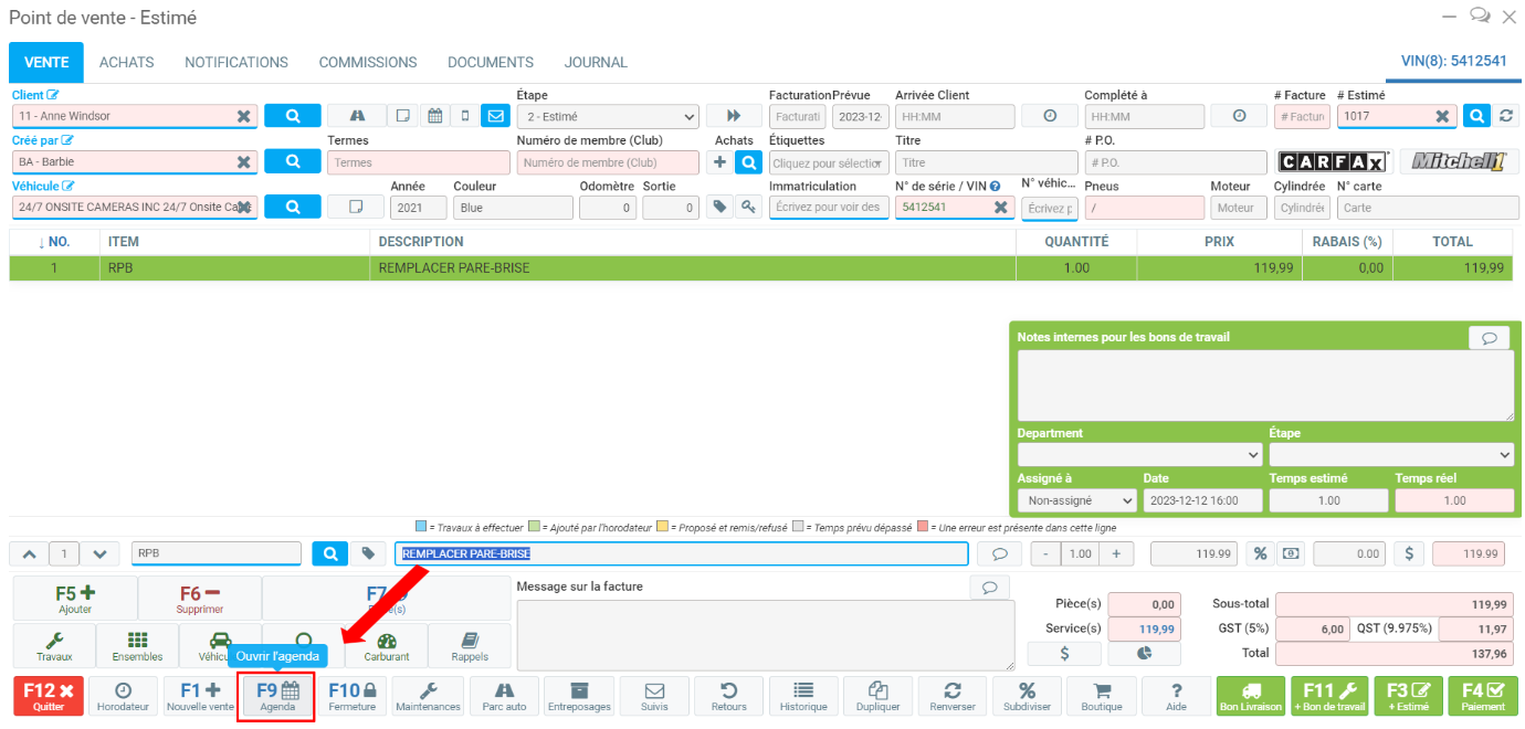 Pour vérifier que le mécanicien a relancé le travail, vous pouvez regarder à l'intérieur de l'Agenda en appuyant sur F9 ou sur l'icône de l'agenda en bas à gauche de votre écran.