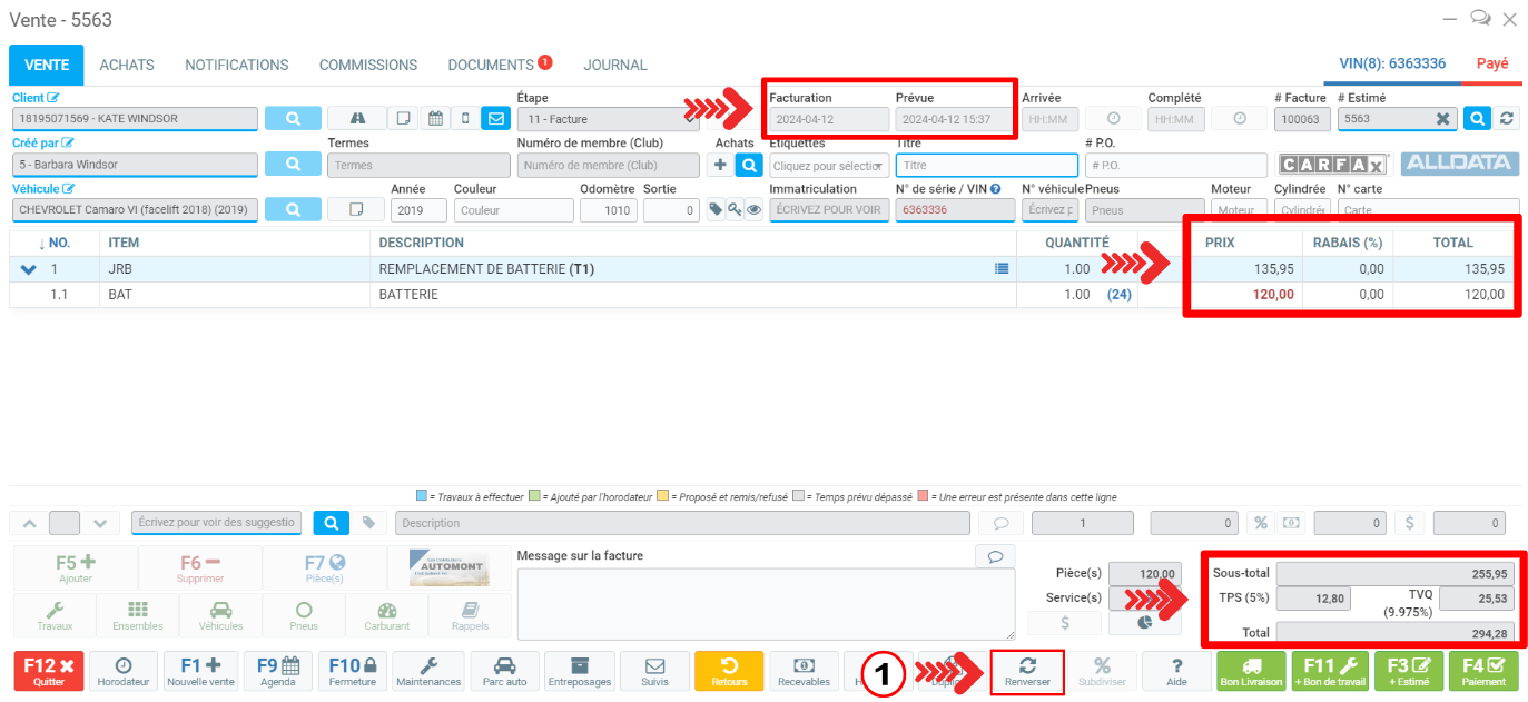 Après chaque renversement factures, il faut faire le bouton paiement afin de finaliser la vente de renversement.