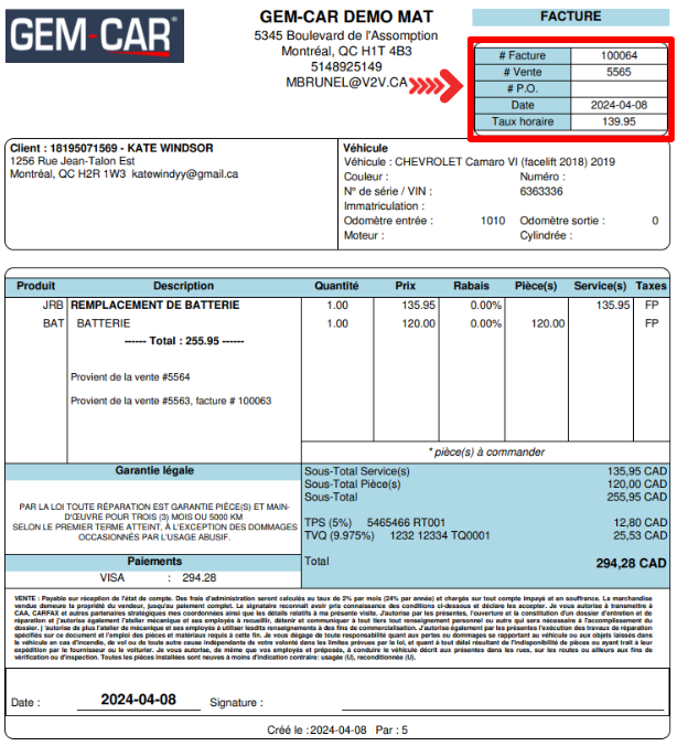 Lorsque vous cliquez sur le bouton, GEM-CAR vous demandera de confirmer le renversement avec le message: ''Êtes-vous certain de vouloir renverser cette vente?''