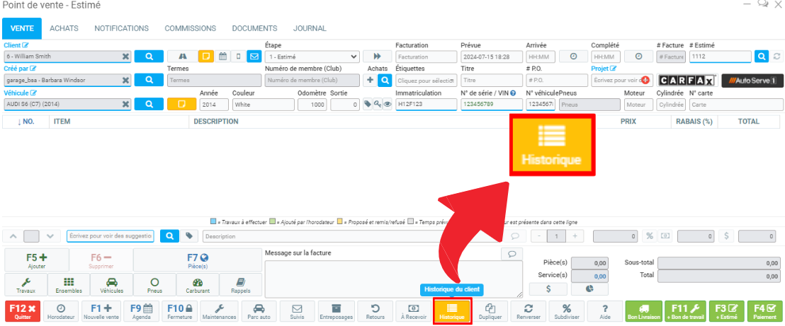 Au Point de vente, vous pouvez rechercher un produit ou service à partir de sa description dans l'Historique.