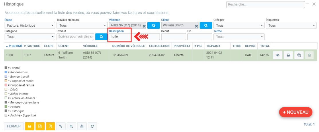Comment rechercher un produit ou un service à partir de sa description dans l'historique