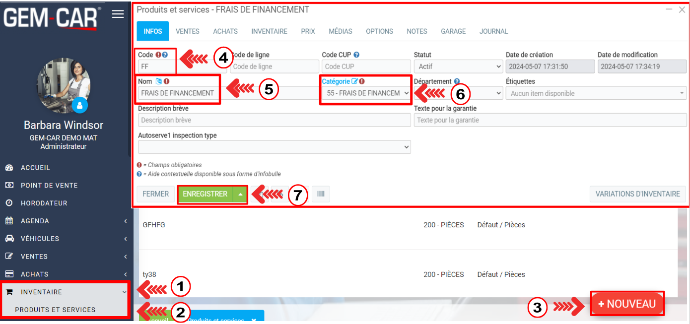 1) Il est nécessaire de créer une nouvelle catégorie dans l'inventaire.
