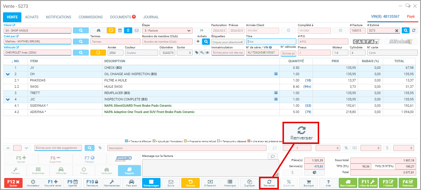 Une fois que vous avez votre vente à l'écran, localisez le bouton Renverser avec le signe de recyclage. On retrouve ce bouton dans cette série que vous retrouverez en bas, à gauche de l'écran.