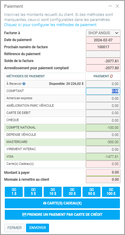 Cliquez sur Paiement situé en pas à droite de l'écran. Vérifiez les montants et cliquez sur Envoyer.