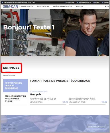 Configuration/ création des services à afficher sur le site web pour la prise de rendez-vous