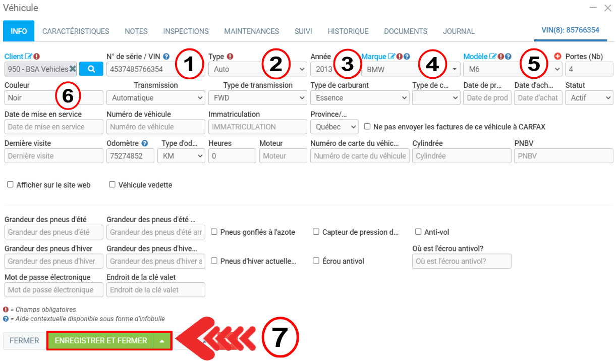 Si le bon véhicule n'est pas sélectionné, vous pouvez toujours ajouter un nouveau véhicule à n'importe quel client, à n'importe quel moment.