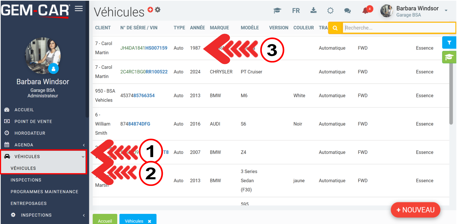 Pour vérifier ces informations, vous pouvez aller dans le menu de gauche Véhicules > Véhicules et sélectionnez le fichier souhaité.