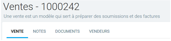 Nous allons maintenant compléter la démarche permettant la création d'une Vente, à partir de laquelle nous pourrons ensuite générer la soumission et la facture.