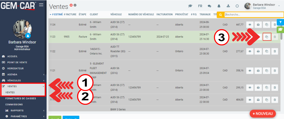 Dans GEM-CAR, il y a deux façons de dupliquer une vente: dans l'onglet des Ventes et dans le Point de vente.