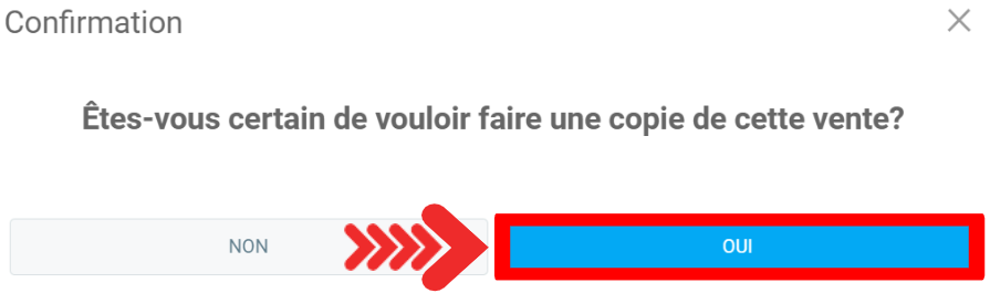 Une fenêtre de confirmation s'ouvre avec le message suivant: ''Êtes-vous certain de vouloir faire une copie de cette vente?''. Cliquez sur Oui.