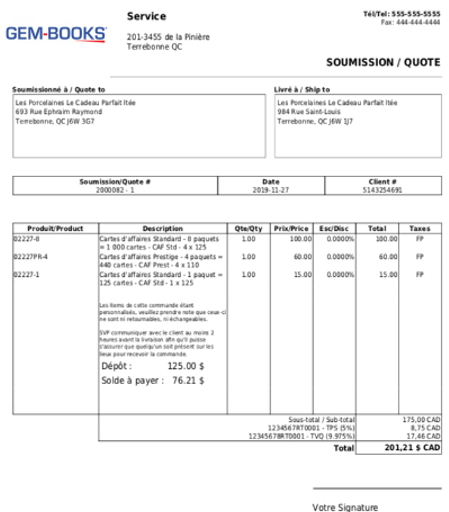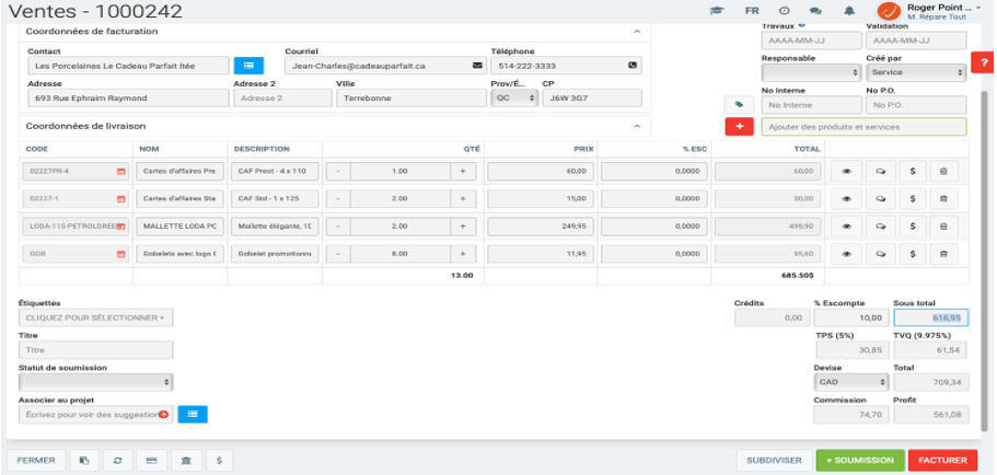 Voici donc votre soumission "éditée", créée à la suite des changements apportés dans votre fiche vente numéro 1000242...